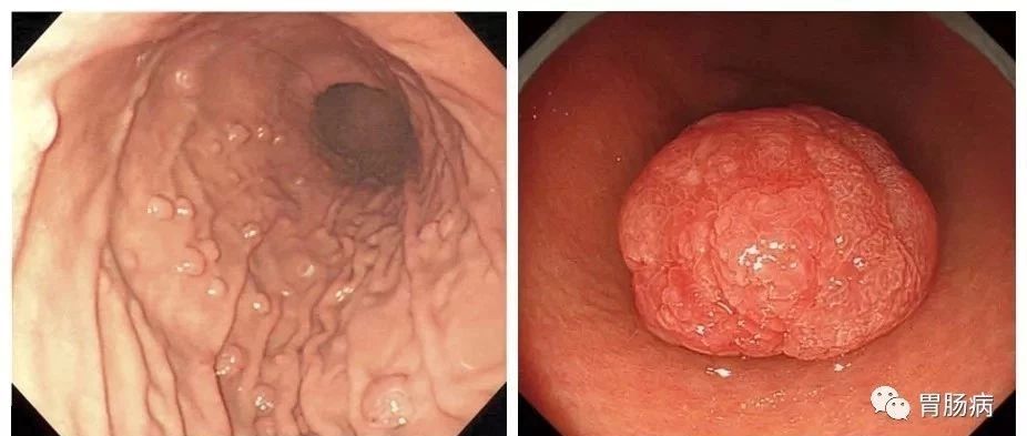 約占胃息肉的10%~25%,癌變率高,可達30%~58.3%,尤其瘤體較大(>2cm的廣基息肉)、絨毛狀腺瘤、伴異型增生者惡變率更高。